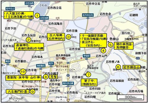 長久手市の隠れた史跡をシリーズで紹介する。 上記地図の各項目番号の概要は下表に示しますが、詳細については、各項目の詳細(PDF画面)のアドレスをクリックしてください 1 ≪立石池(岩作で一番巨大な池)の南堤中央にある史跡≫ ・八大龍王の碑 大正2年…