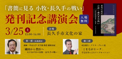 ◇日時 令和5年3月25日(土) ※本イベントは終了いたしました。 ◇場所 長久手市文化の家 森のホール 東部丘陵線(リニモ)「はなみずき通」駅下車、徒歩7分 ※駐車台数に限りがあります。できるだけ公共交通機関をご利用ください。 ◇第1部:基調講演 「織田から豊…