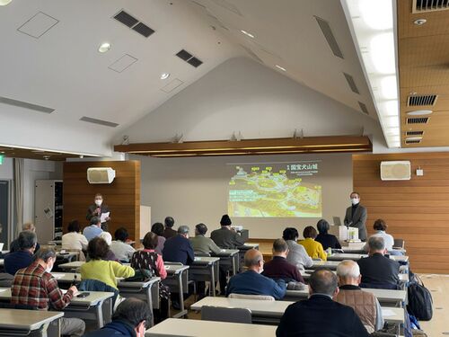 2023年2月12日に、全体学習会が開催されました。テーマは「国宝犬山城と世界かんがい施設遺産入鹿池」です。講師は犬山歴史研究会会長の丸山和成氏にお願いいたしました。 「国宝犬山城創建の諸説、構造、歴代城主の話」、「世界灌漑施設遺産入鹿池の尾張名…