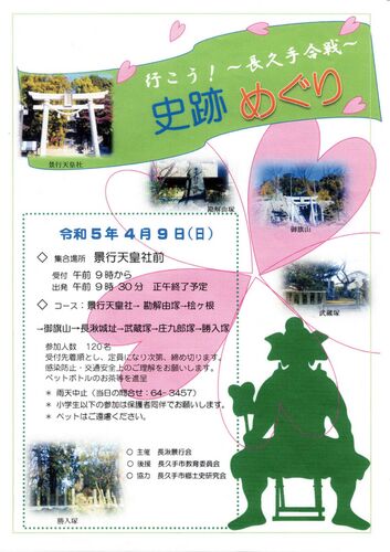 こんにちは! 郷土史研のヨシムです。 会員の林(力)さんから投稿が届きました♪ 4月9日3年ぶりに「第20回 長湫景行会主催の長久手合戦史跡めぐり」が開催されました。 天正12(1584)年、羽柴秀吉と徳川家康が直接対決(生涯1回のみ)した長久手合…