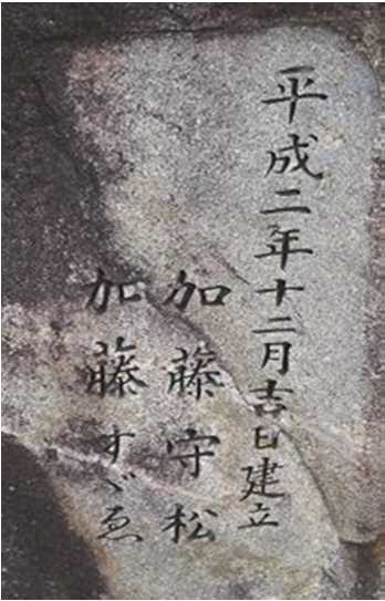 和歌を自然石(高さ150cm、幅120cm)に刻碑して、平成2年(1990)12月24日に加藤守松・すゞゑ夫妻(岩作字中根)によって建立されました。