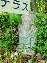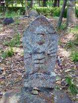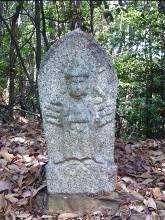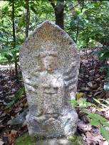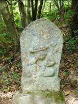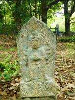 花崗岩、舟形浮き彫りで、舟形高50 センチから55 センチ程であり、基壇はホルンフェルスである。
